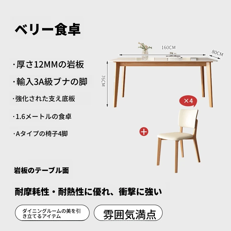 ベリー岩板ダイニングテーブル1.6メートル+aタイプダイニングチェア*4