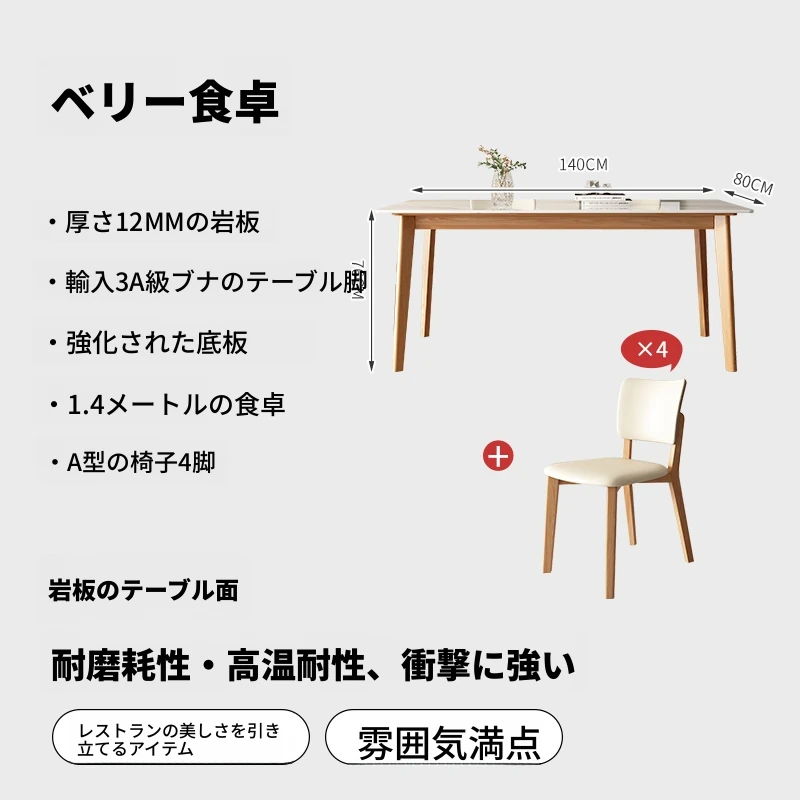 ベリー岩板ダイニングテーブル1.4メートル+aタイプダイニングチェア*4