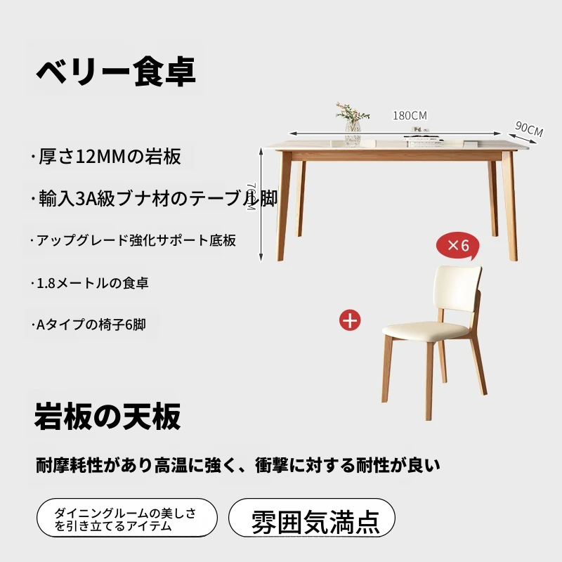 ベリー岩板ダイニングテーブル1.8メートル+aタイプダイニングチェア*6