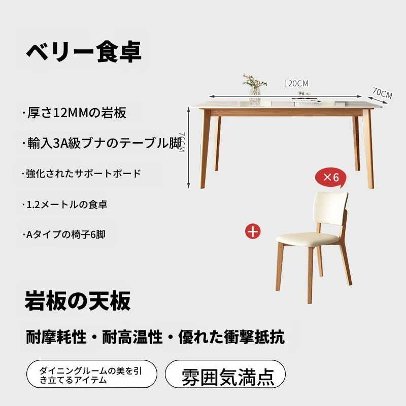 ベリー岩板ダイニングテーブル1.2メートル+aタイプダイニングチェア*6
