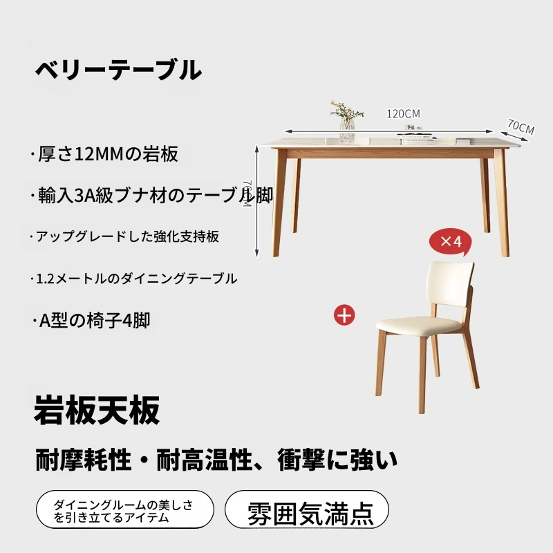 ベリー岩板ダイニングテーブル1.2メートル+aタイプダイニングチェア*4