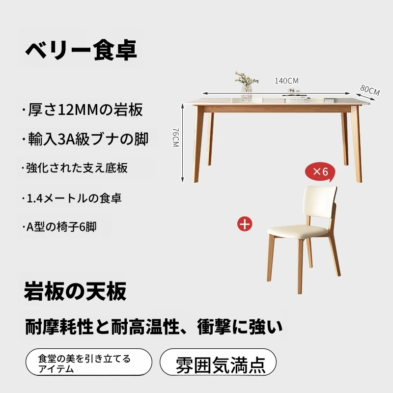 ベリー岩板ダイニングテーブル1.4メートル+aタイプダイニングチェア*6