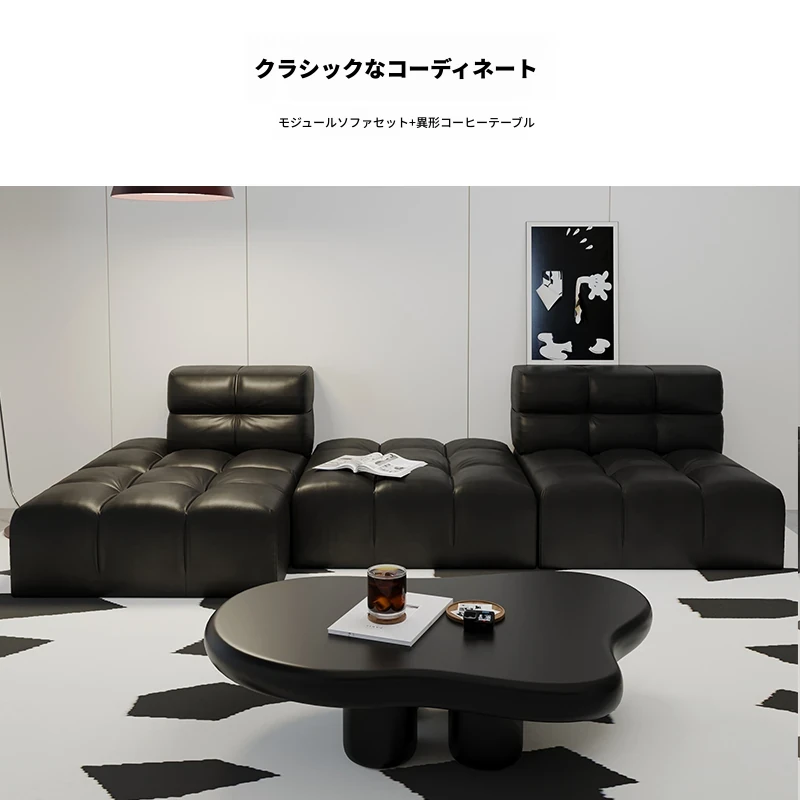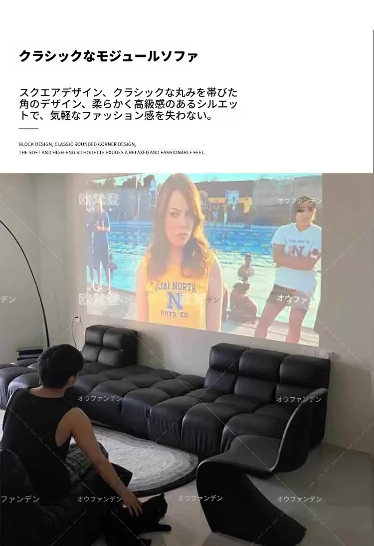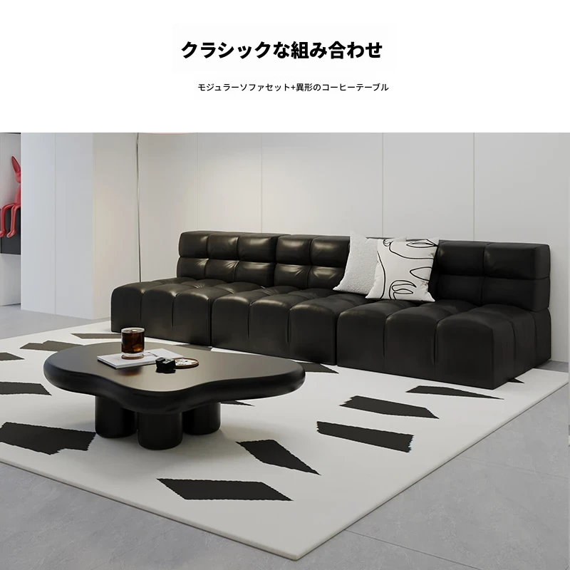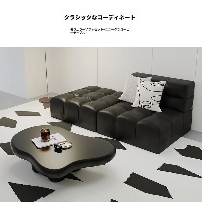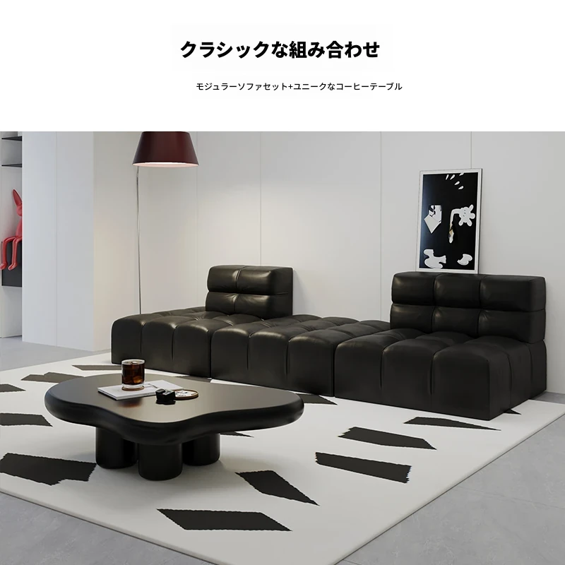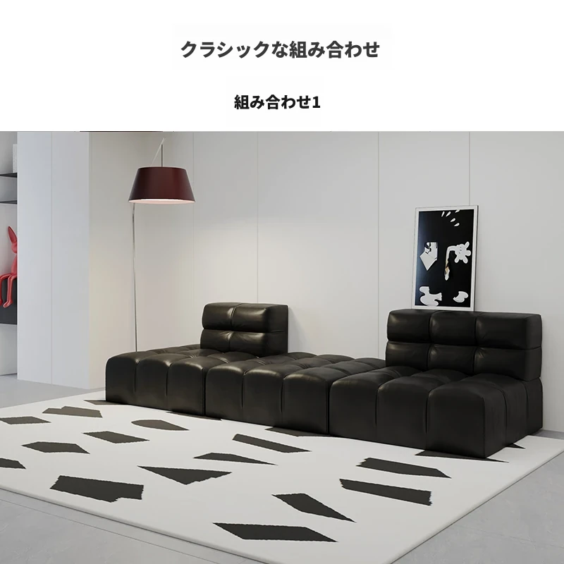 おしゃれなレトロデザイン!自由に組み合わせ可能なモジュール式ソファ - ネコの爪を防ぐ工夫付き!小さなお部屋にもぴったりなブラックの豆腐ブロックソファで、快適なリビング空間を実現しましょう。