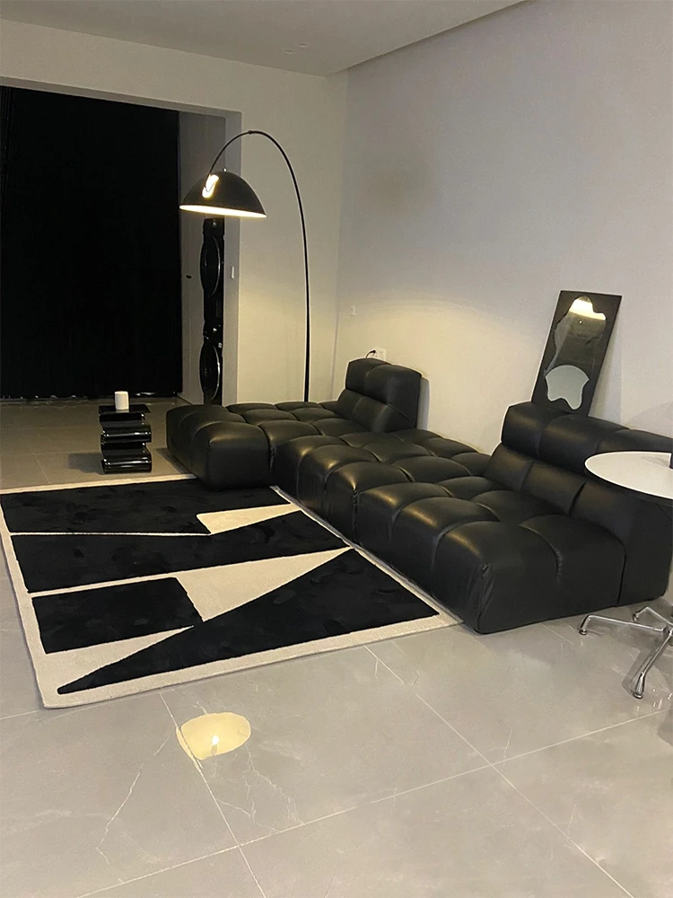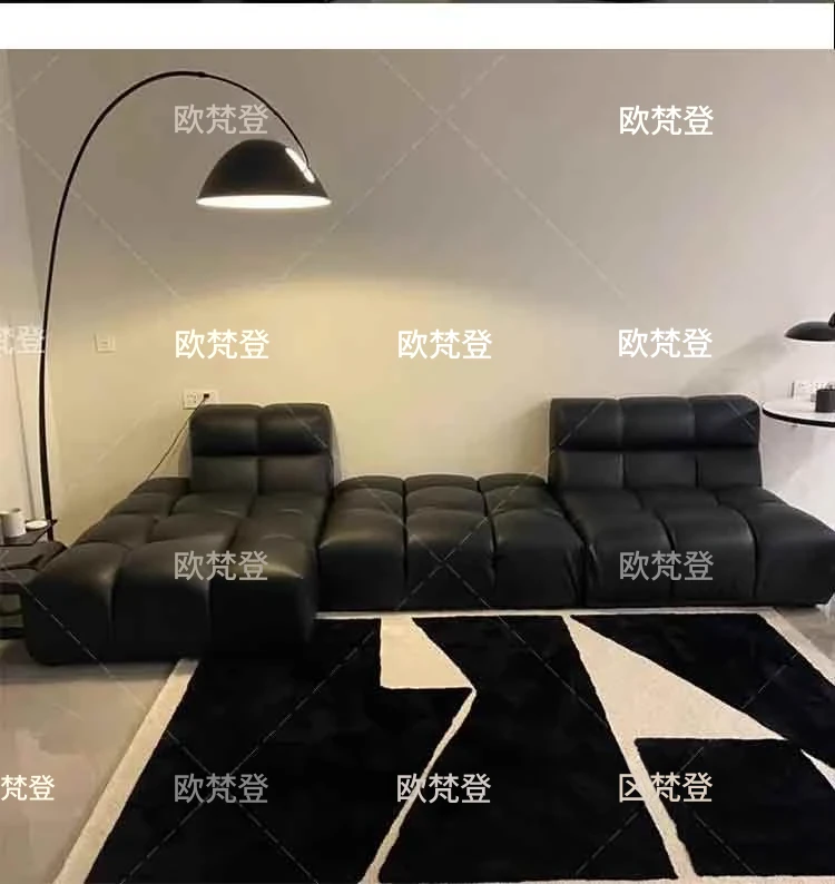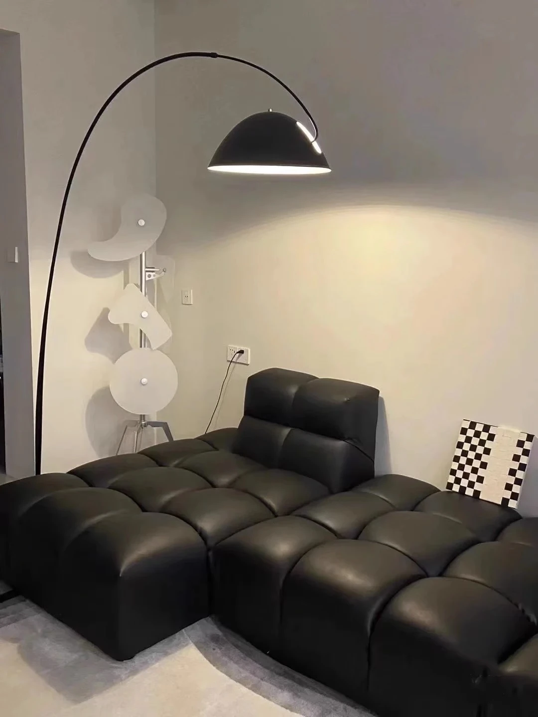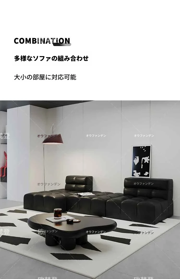 おしゃれなレトロデザイン!自由に組み合わせ可能なモジュール式ソファ - ネコの爪を防ぐ工夫付き!小さなお部屋にもぴったりなブラックの豆腐ブロックソファで、快適なリビング空間を実現しましょう。