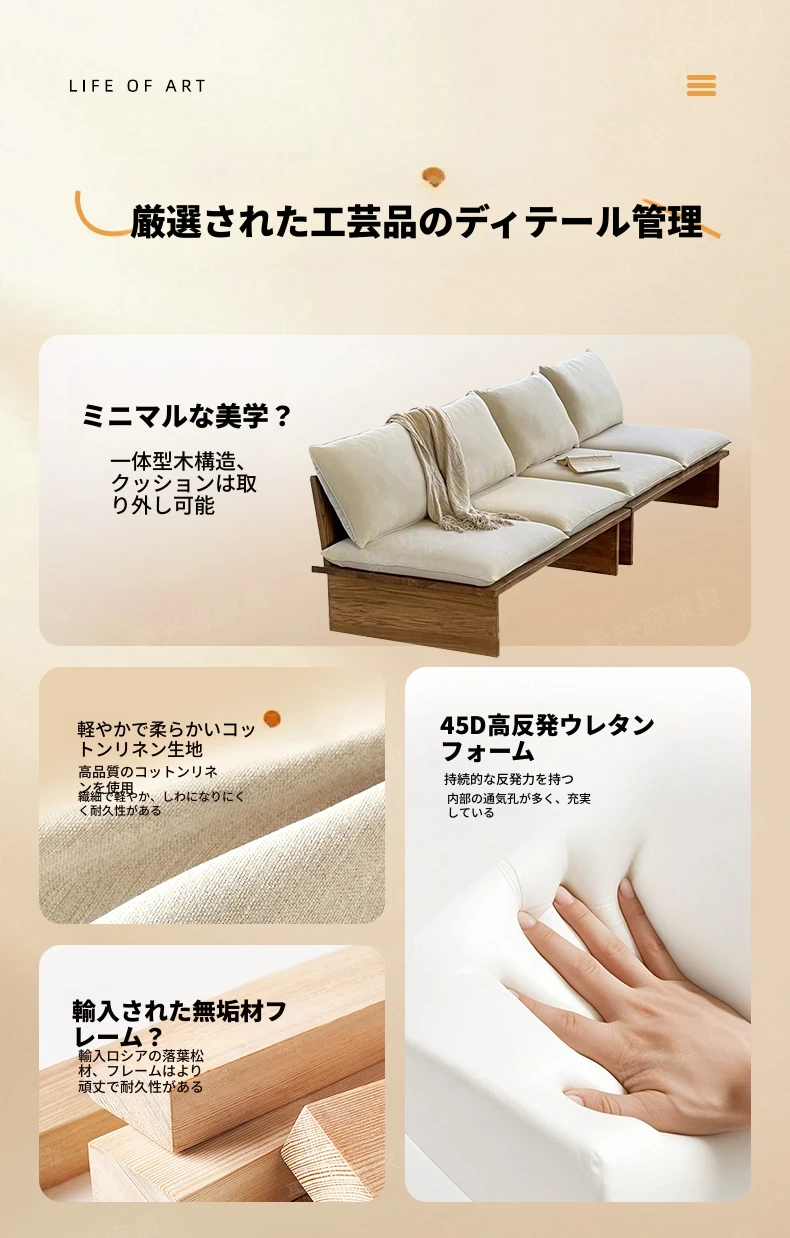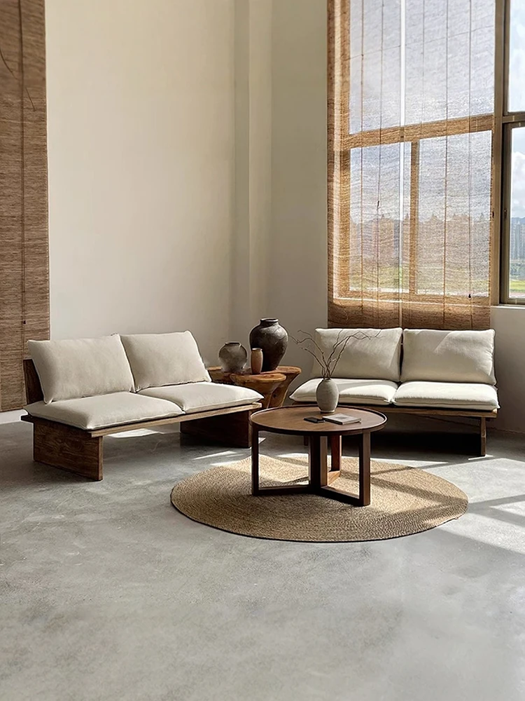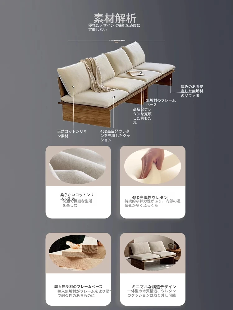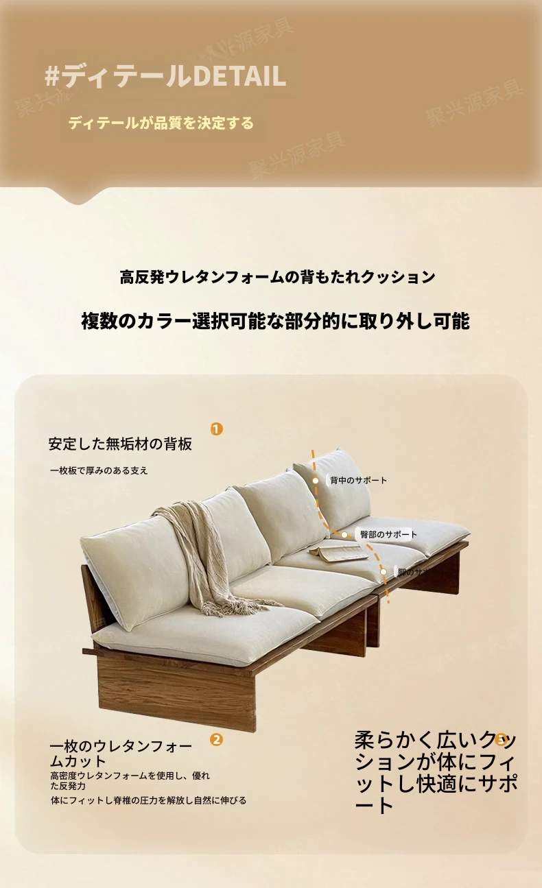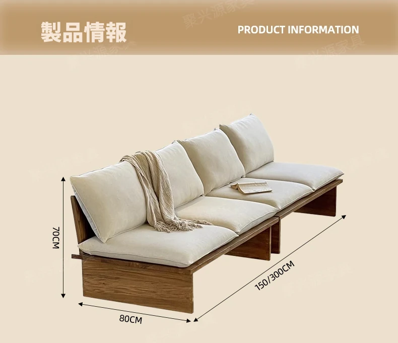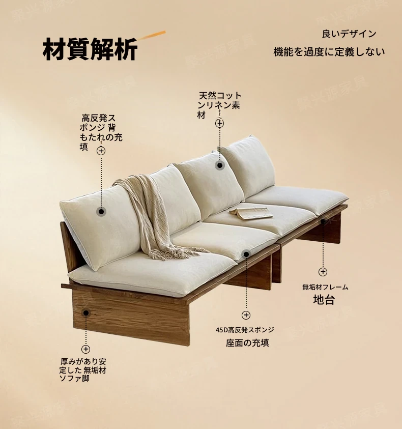 侘寂スタイルの無垢材フロアソファ - 洗えるおしゃれなレトロデザイン!カフェ、民宿、ホテルロビーに最適なカウンター席・休憩エリアにぴったり!