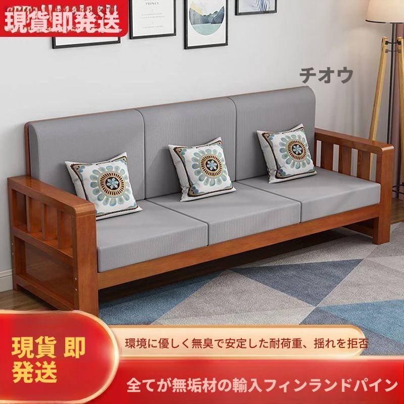 新中式スタイルの無垢材ソファセット - 経済的でシンプルな三人掛け、コンパクトなリビングにぴったり!自然な木の温もりを感じる、おしゃれで機能的な家具で、あなたの家を素敵に演出します。