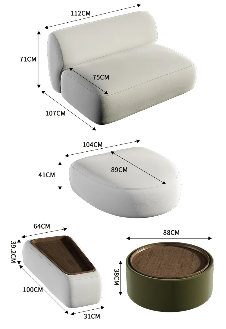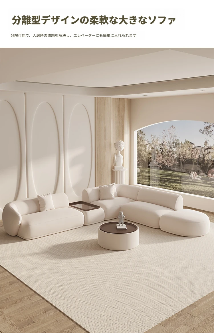 白の右肘掛け152CM+白の長方形テーブル+白のコーナー152CM+白色の肘なし112CM+白の足踏み+白の丸型テーブル