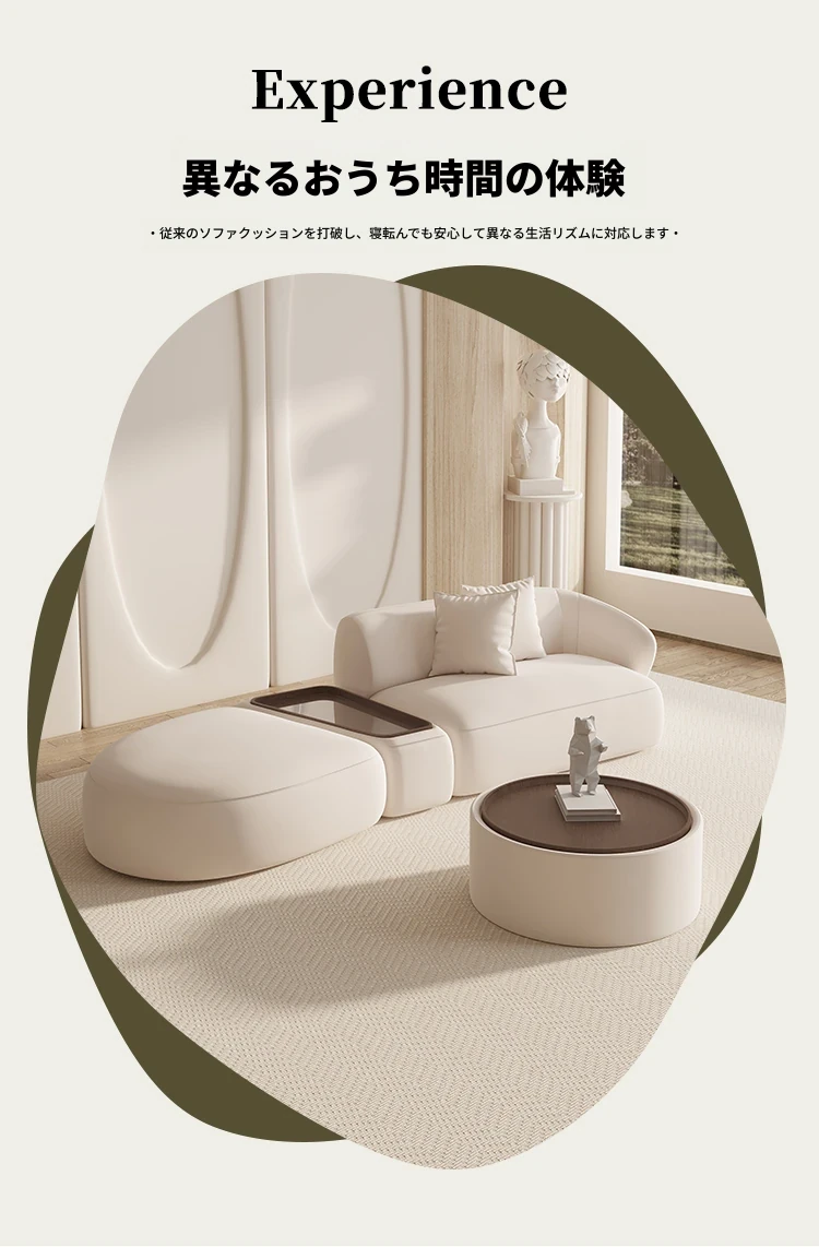 ユニークなコーナーソファ - 小型宿泊施設、美容院、服装店、オフィスの待機スペースに最適!おしゃれでコンパクトなデザインで、くつろぎのひとときを提供します。お客様との会話を楽しむための理想的なアイテムです!