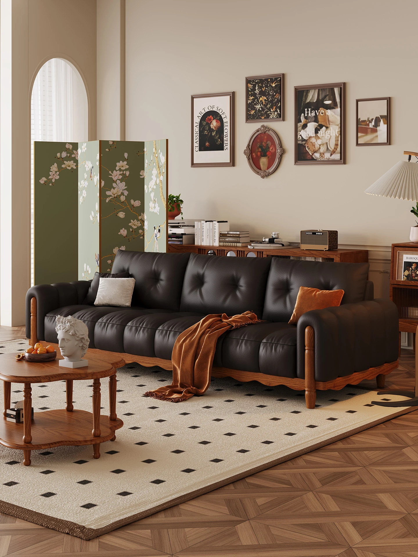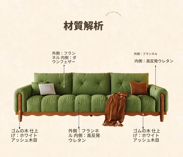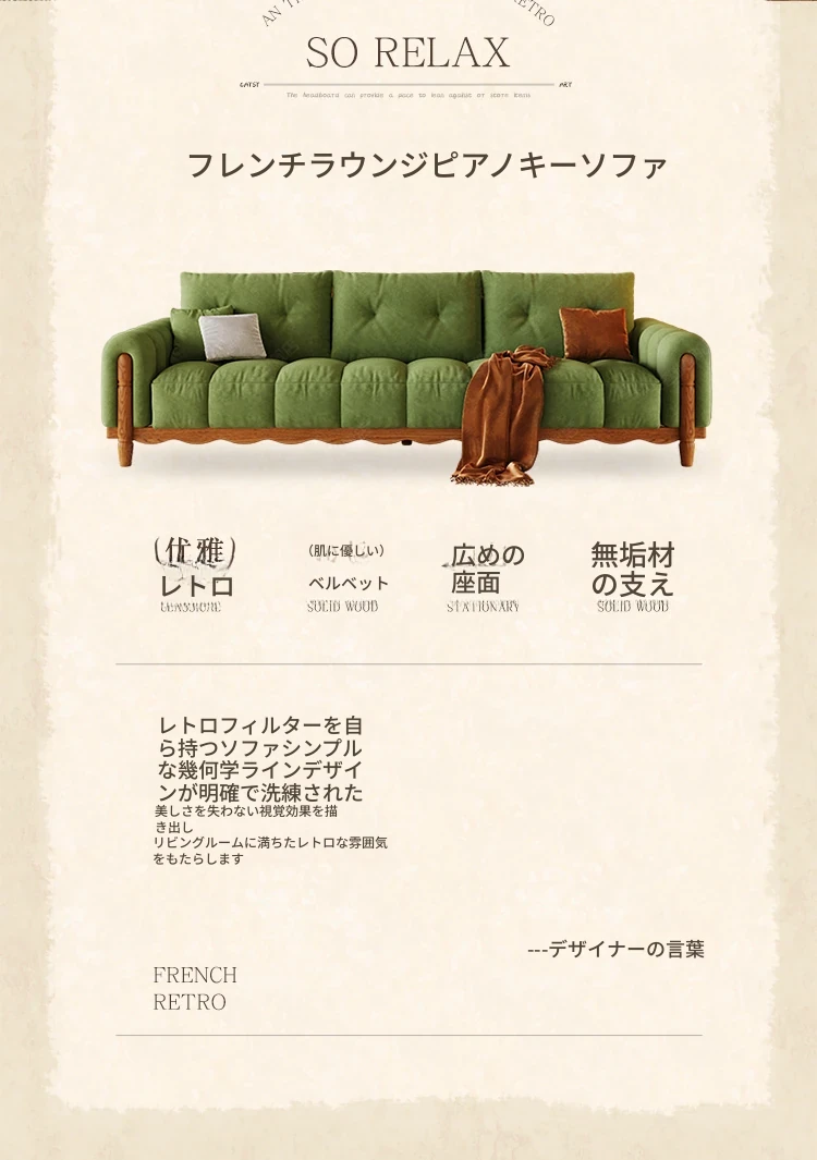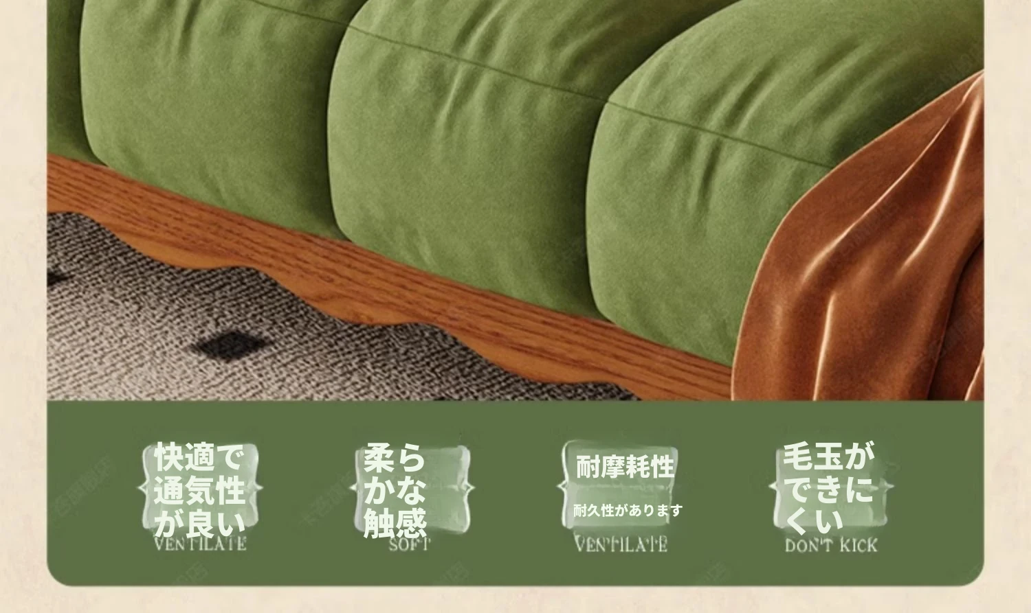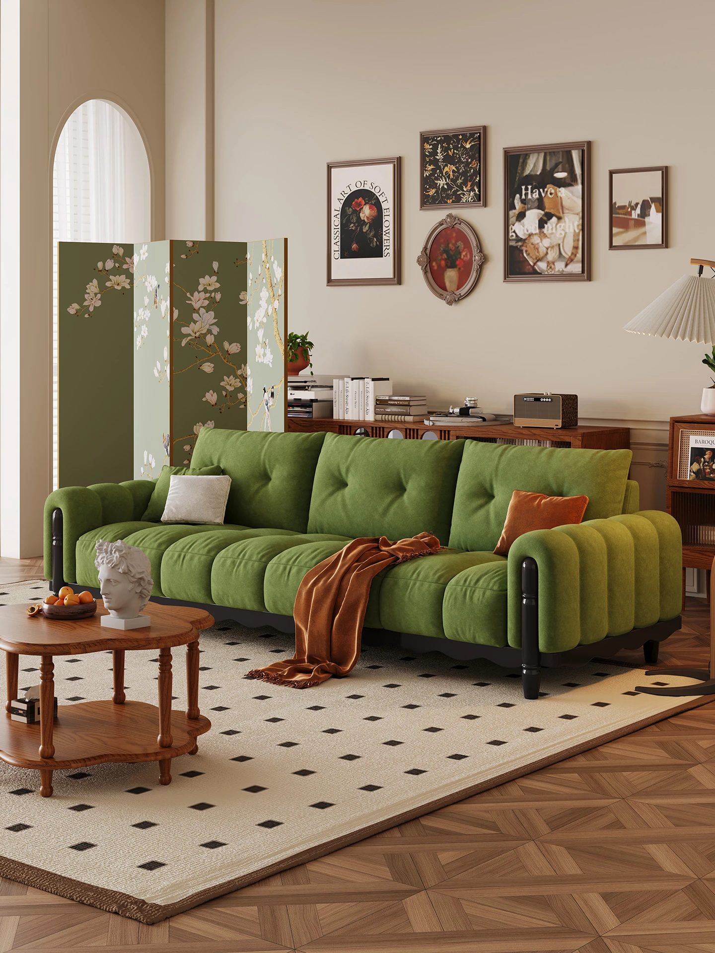 2024年新款!フレンチアンティークスタイルの無垢材ソファ - 鋼琴鍵デザインのレトロアメリカン直列生地ソファ、深いグリーンで洗練されたリビングルームにぴったり!