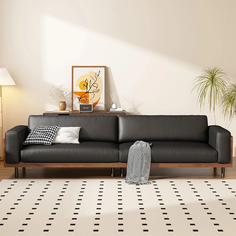 2024年新作!北欧風デザインのウッドソファ - 小型リビングにぴったりな猫爪テクノロジー布使用の3人掛けレザーソファ。おしゃれで機能的な空間を演出します!