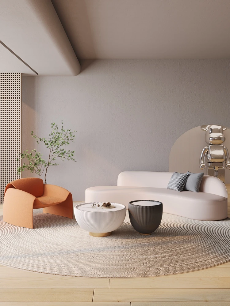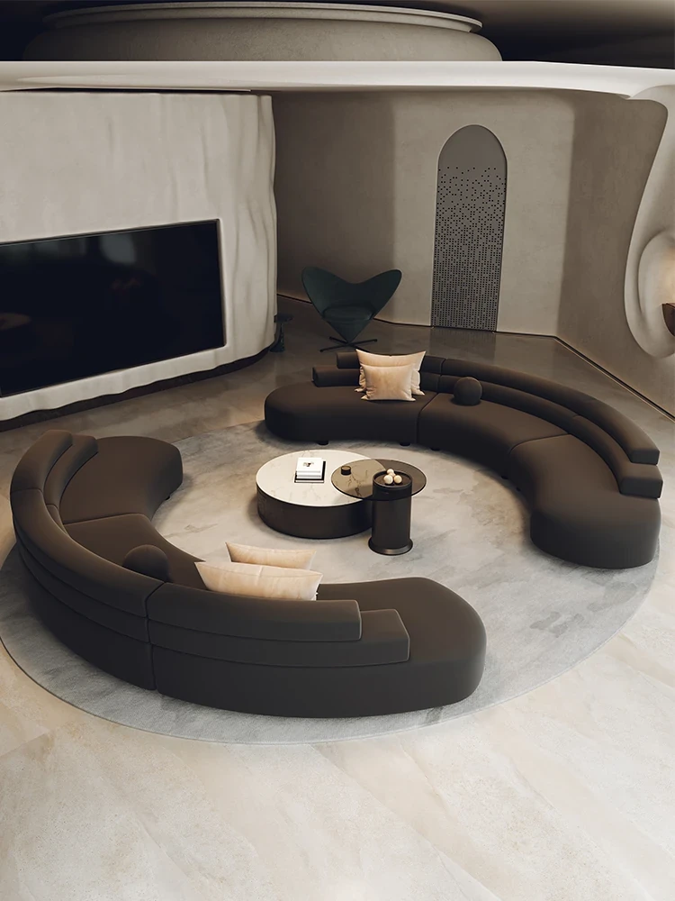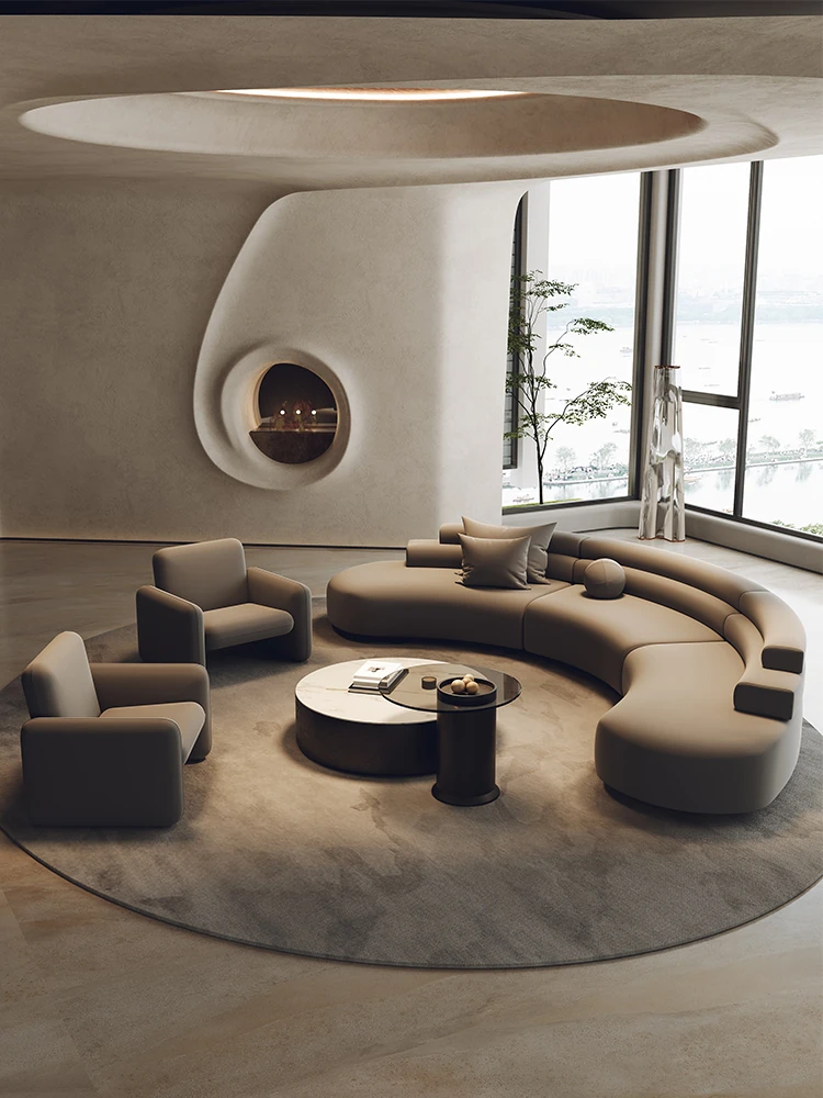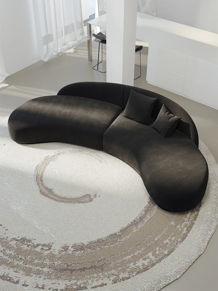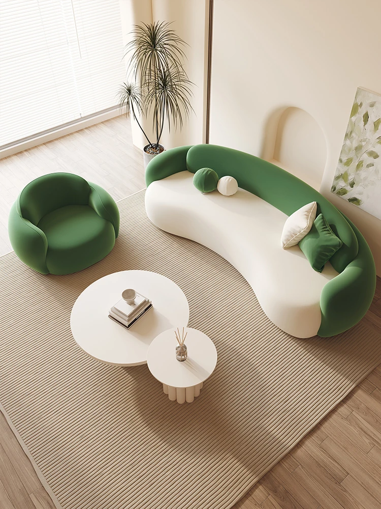 ドリームソファ イタリアンミニマリズムスタイル 高級ヴィラ向け リビングルーム用 家庭用 大小兼用 ラウンドシェイプ ファブリックソファで、快適なひとときを演出!