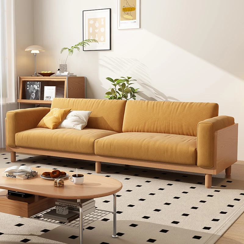 2023年新作!シンプルでスタイリッシュな布製ソファ - 和風デザインの無垢材使用、モダンな小型リビングにぴったりなコーデュロイソファ!おしゃれで快適な空間を演出します。