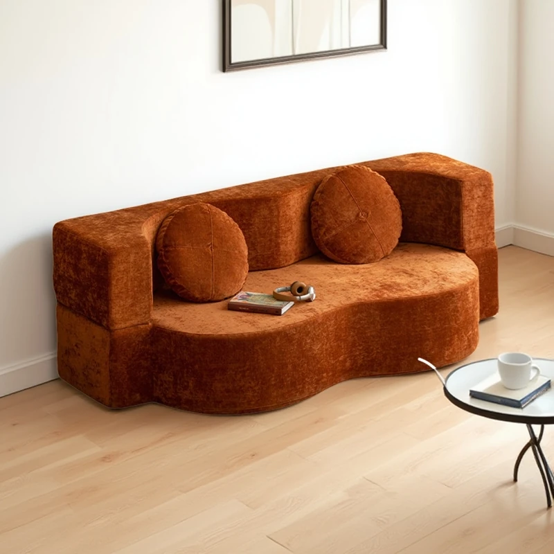 2025年新作!レトロデザインのモジュラーソファ!リビングにぴったりなコンパクトサイズ、折りたたみ可能な2WAY使用。ダブルサイズのコットンベルベットソファベッドで、心地よいひとときをお楽しみください!