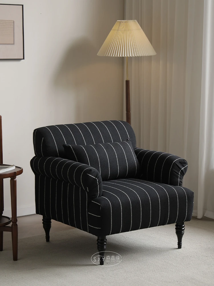 フレンチビンテージ一人掛けソファ|侘寂風デザイン|リビングやバルコニーにぴったりの虎柄チェア|アメリカンスタイルのモノクロストライプファブリック椅子で、オシャレな空間を演出!