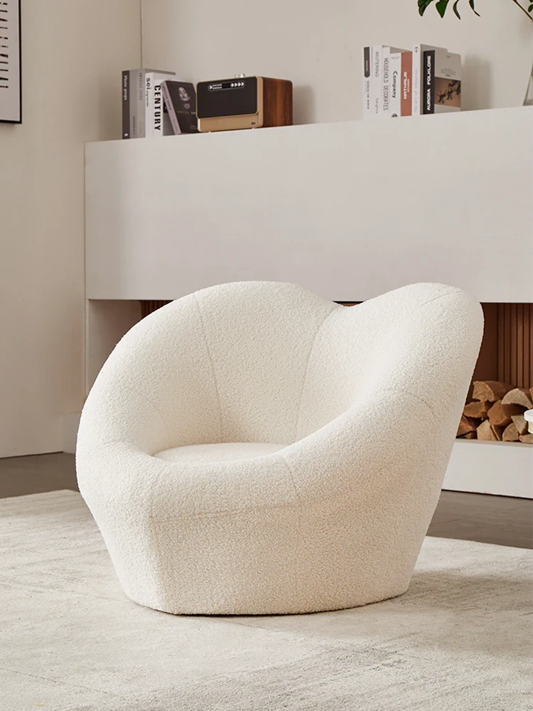 Cozy Single Lazy Sofa Chair in Heart Shape - White Lamb Fleece for Bedroom and Balcony - Perfect Relaxation Seat for Your Leisure Moments
