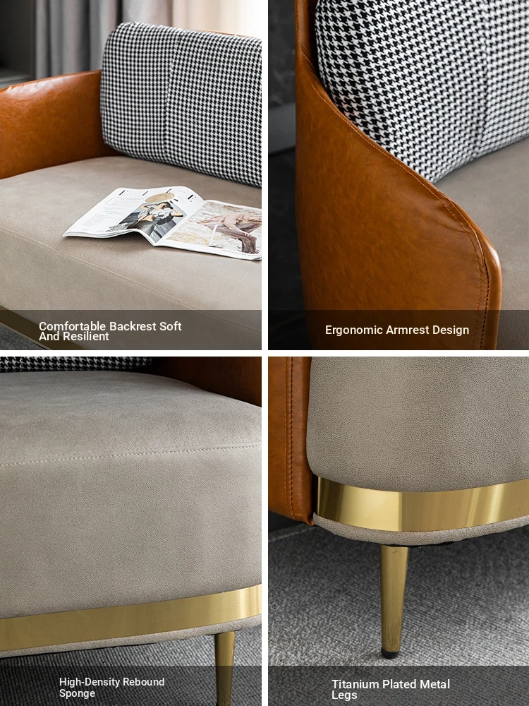 Chic Houndstooth Sofa for Small Spaces - Modern Nordic Minimalist Design, Versatile Leather and Fabric Sofa Chair for Living Room and Bedroom, Perfect for Singles or Families (1 to 3 Seat Options)